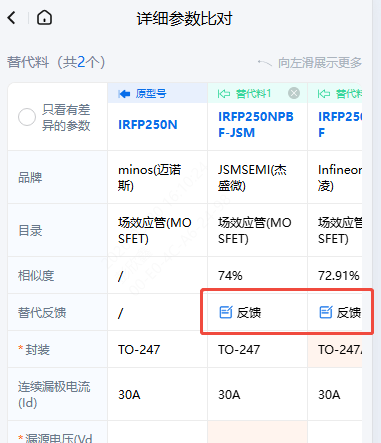 海量替代型号:操作简单、破解紧急生产时核心料号缺货无合适替代、海量替代型号筛选无方向的难题;