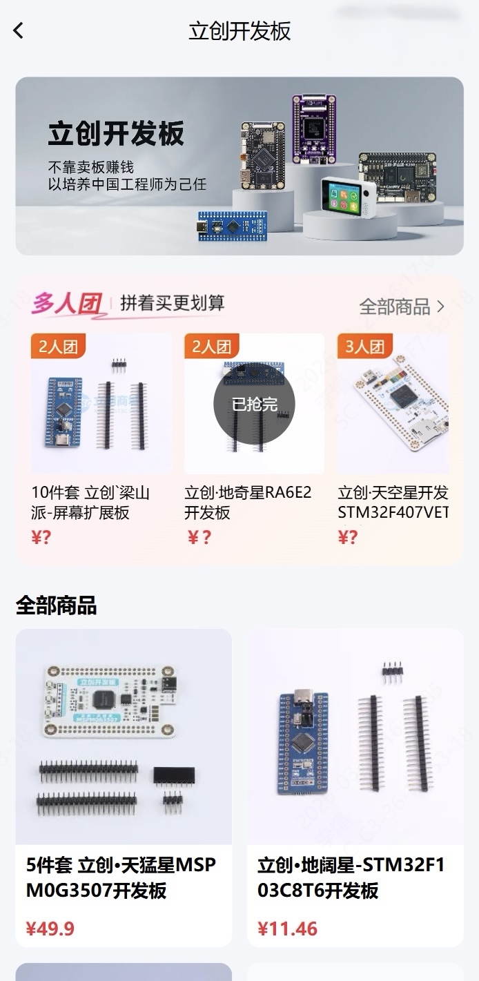一站式集合商城在售全品类立创开发板,手机端即可快速浏览、一键下单;